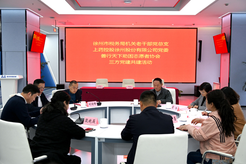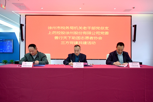 2023年4月25日,上药控股徐州股份有限公司党委与徐州市税务局机关老干部党总支、徐州市善行天下助困志愿者协会党建共建签约仪式在徐州市税务局会议室顺利举行。徐州市税务局党委副书记、副局长赵继光出席本次活动,公司党委书记、总经理晁亮,徐州市税务局老干部科科长、老干部党总支书记刘昀峰,善行天下协会会长王兆武代表三方签订党建共建协议。