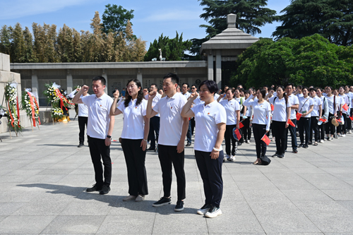 为迎接党的二十大召开,庆祝建司七十周年,2022年6月25日,公司党委组织全体党员、预备党员、入党积极分子开展瞻仰淮海战役烈士纪念塔的党日活动。
