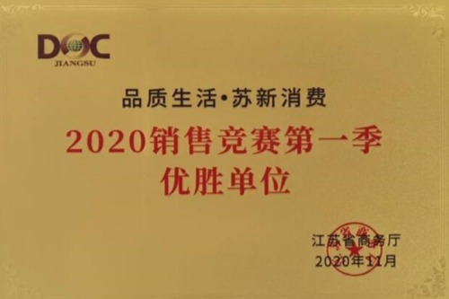 熱烈祝賀公司榮獲江蘇省2020年銷(xiāo)售競(jìng)賽第一季優(yōu)勝單位稱號(hào)2020年江蘇省重點(diǎn)商貿(mào)流通企業(yè)座談會(huì)在南京召開(kāi),會(huì)上對(duì)6-8月開(kāi)展的“品質(zhì)生活?蘇新消費(fèi)”“2020年銷(xiāo)售競(jìng)賽第一季”中的優(yōu)勝單位進(jìn)行了授牌表彰。了解詳情2020/12/22 18:44:09 -