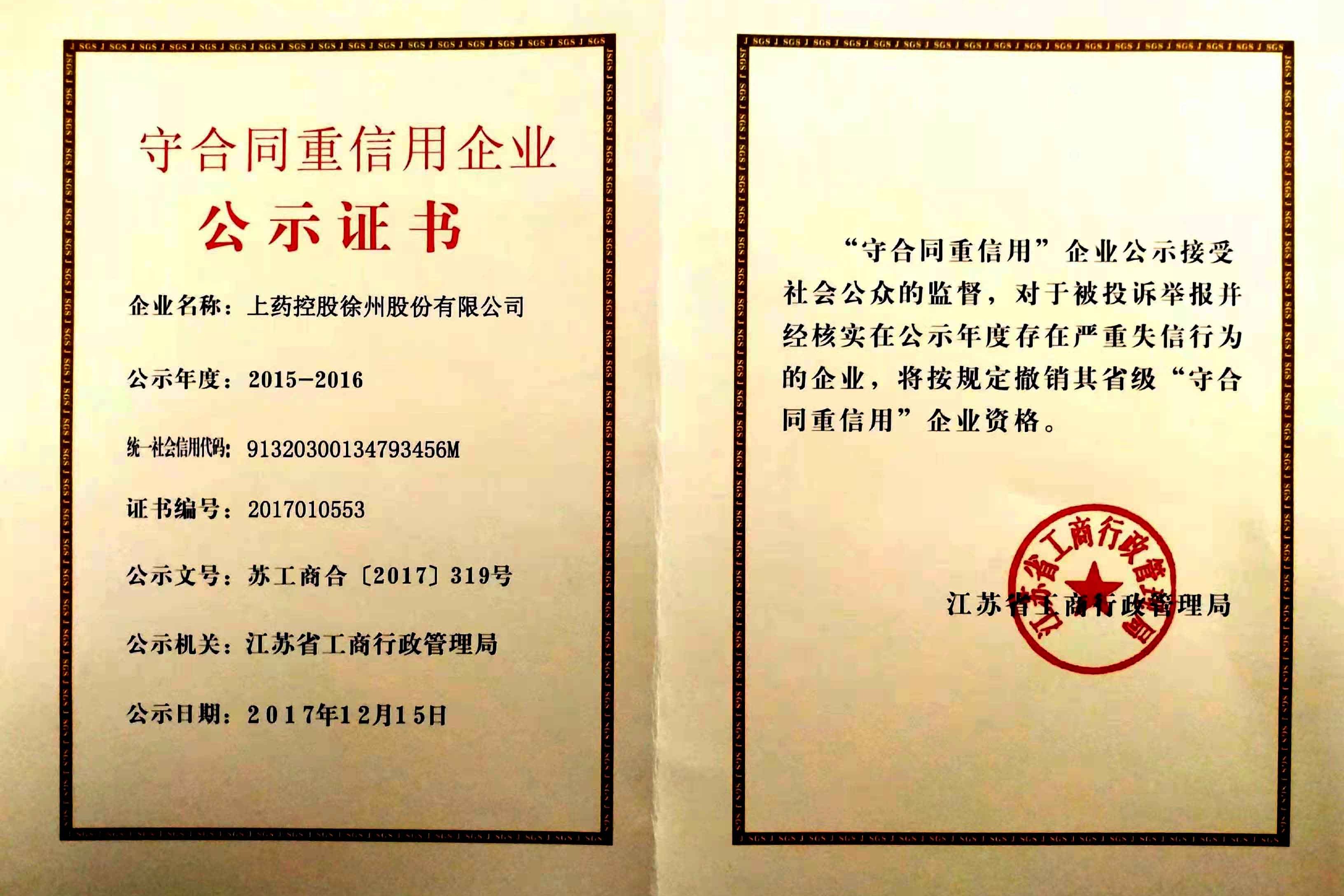 公司榮獲省級(jí)守重企業(yè)和市級(jí)社保誠(chéng)信A級(jí)單位稱號(hào)上藥控股徐州股份有限公司榮獲了江蘇省“守合同,重信用”企業(yè)、徐州市社會(huì)保險(xiǎn)誠(chéng)信等級(jí)A級(jí)單位兩項(xiàng)光榮稱號(hào)。了解詳情2018/1/24 18:42:41 -